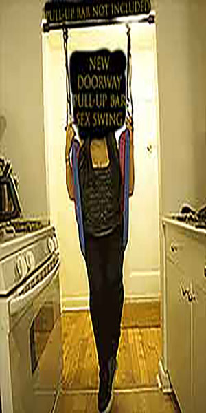 over, all they see is a doorway pull up bar - inner thought "Ah staying fit"